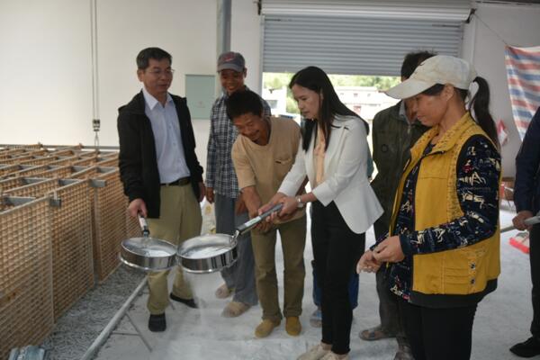 幫扶專(zhuān)家團(tuán)由蠶桑產(chǎn)業(yè)科技服務(wù)團(tuán)團(tuán)長(zhǎng)黃紅燕研究員帶隊(duì),蠶??萍挤?wù)團(tuán)秘書(shū)長(zhǎng)、組長(zhǎng)、科技特派員代表及相關(guān)工作人員10人組成。幫扶專(zhuān)家團(tuán)前往盛典村示范大蠶房開(kāi)展“蠶桑富民”專(zhuān)項(xiàng)活動(dòng),贈(zèng)送一批省力化養(yǎng)蠶用具,進(jìn)行蠶桑器械示范、養(yǎng)蠶技術(shù)指導(dǎo)、講解人畜住宿合理規(guī)劃等內(nèi)容,進(jìn)一步推動(dòng)盛典村蠶桑扶貧產(chǎn)業(yè)發(fā)展,改善盛典村人居環(huán)境,助推建設(shè)美麗宜居村。