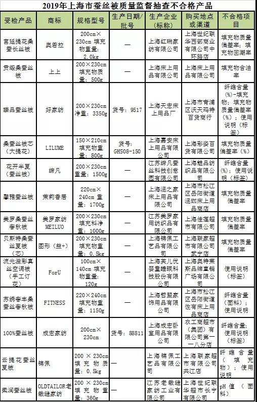 近期,上海市市場監(jiān)管局對(duì)80批次生產(chǎn)、銷售的蠶絲被產(chǎn)品進(jìn)行了監(jiān)督抽查。幾乎涵蓋了上海市在售蠶絲被的主流品牌,經(jīng)檢驗(yàn),不合格13批次。