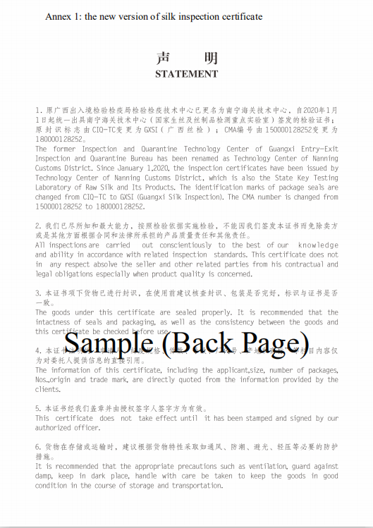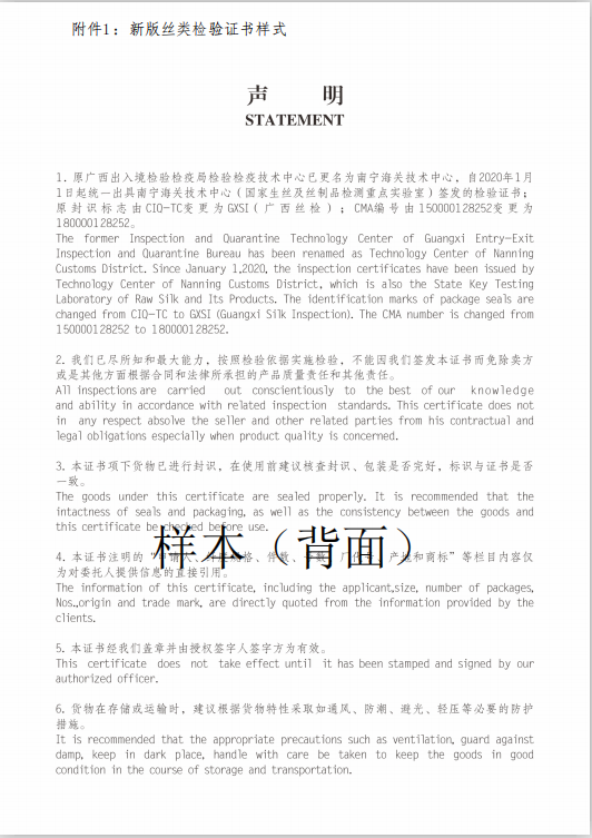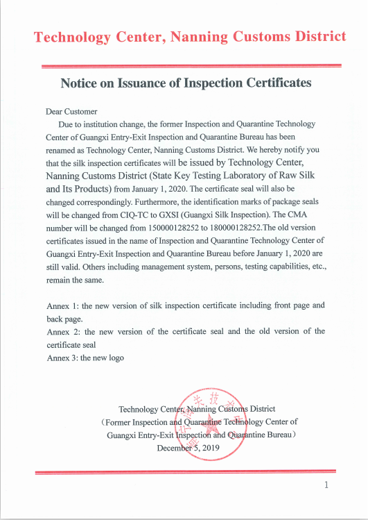 南寧海關(guān)關(guān)于絲類檢驗(yàn)證書簽發(fā)有關(guān)事宜的通告
