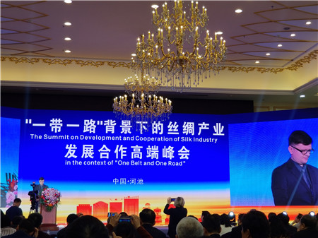 為抓住中國-東盟自貿(mào)區(qū)升級發(fā)展和中新互聯(lián)互通西部陸海新通道建設(shè)的機遇,緊扣培育河池千億絲綢產(chǎn)業(yè)集群目標(biāo),從河池整個絲綢產(chǎn)業(yè)鏈入手加強國際合作,著力在宜州區(qū)建好中國絲綢城這個“鏈頭”,以打造河池市絲綢產(chǎn)業(yè)生態(tài)圈拉長“鏈身”、串好“鏈條”,逐步覆蓋廣西、廣東以及東南亞等地,并借勢“一帶一路”南向通道向歐亞延伸,形成輻射全球的絲綢產(chǎn)業(yè)中心,12月13-14日河池市宜州區(qū)隆重舉行了“一帶一路”背景下的絲綢產(chǎn)業(yè)發(fā)展合作峰會。