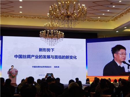 中國絲綢協(xié)會副會長錢有清做了關(guān)于新形勢下中國絲綢產(chǎn)業(yè)的發(fā)展與面臨的新變化的報告,首先錢會長明確了絲綢產(chǎn)業(yè)的定位是中國文化國粹產(chǎn)業(yè);精準(zhǔn)扶貧、鄉(xiāng)村振興產(chǎn)業(yè);生態(tài)環(huán)保、綠色健康產(chǎn)業(yè);國際競爭優(yōu)勢產(chǎn)業(yè),并介紹了近幾年中國繭絲綢行業(yè)的發(fā)展情況,包括產(chǎn)業(yè)結(jié)構(gòu)持續(xù)優(yōu)化升級、研發(fā)制造能力加速提升、創(chuàng)新體系建設(shè)更加完善、行業(yè)綠色發(fā)展有序推進。