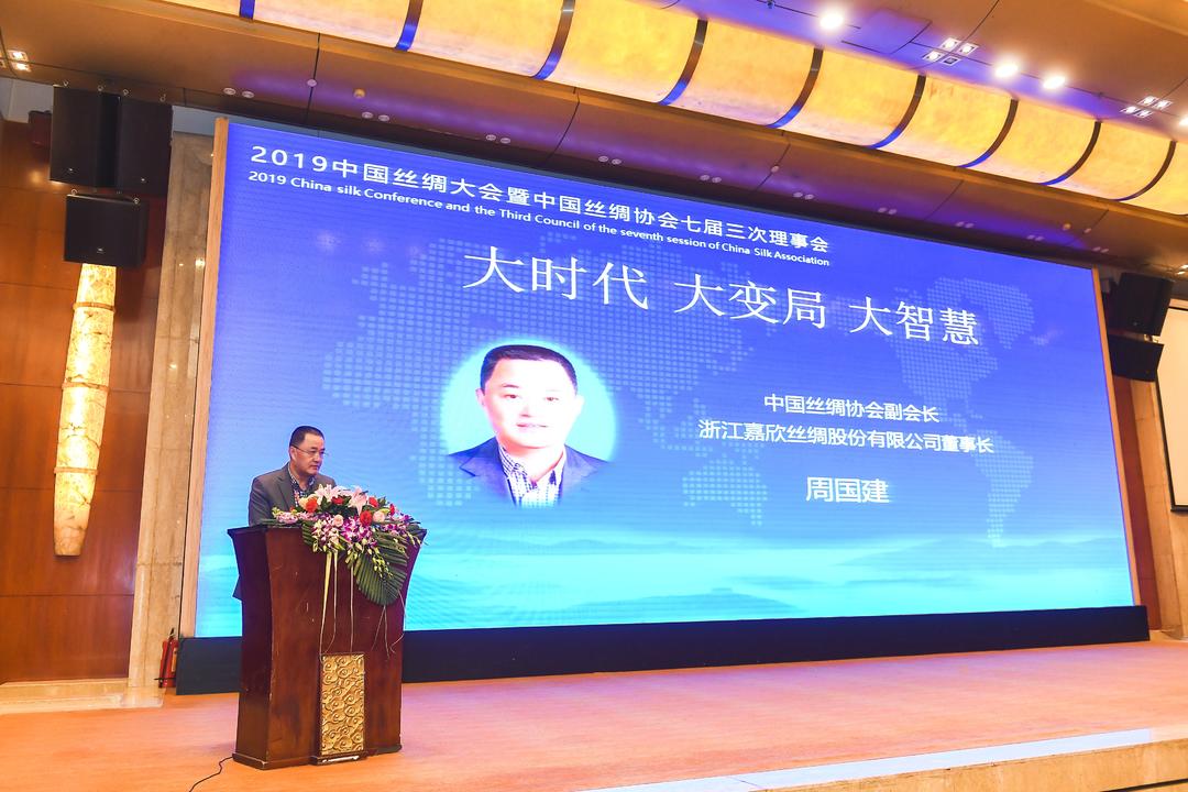 中國(guó)絲綢協(xié)會(huì)副會(huì)長(zhǎng)、嘉欣絲綢股份有限公司董事長(zhǎng)周?chē)?guó)建講話(huà)