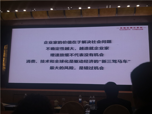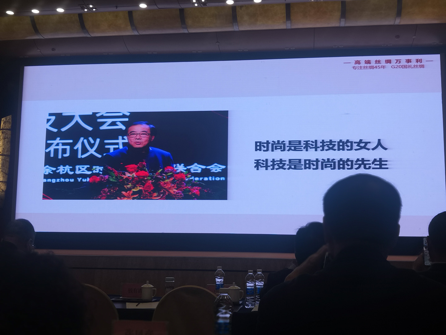 中國絲綢協(xié)會(huì)副會(huì)長、萬事利集團(tuán)有限公司董事長屠紅燕發(fā)表題為《中美貿(mào)易戰(zhàn)背景下傳統(tǒng)企業(yè)的科技探索》的演講