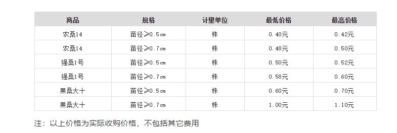 嘉興海寧2020年1月13日主要桑品種嫁接苗市場(chǎng)行情