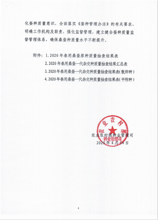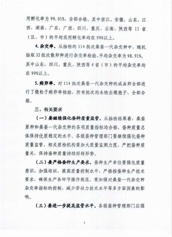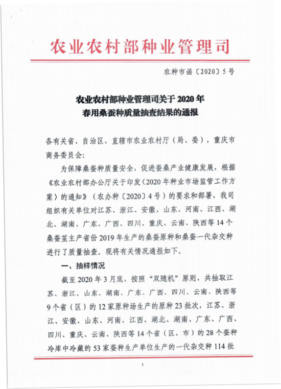 農(nóng)業(yè)農(nóng)村部種業(yè)管理司關(guān)于2020年春用桑蠶種質(zhì)量抽查結(jié)果的通報(bào)