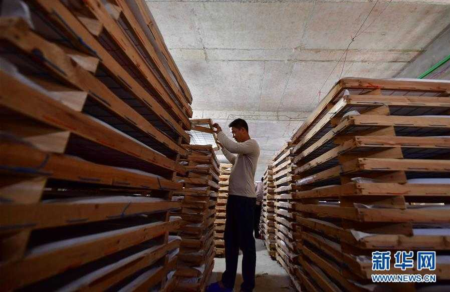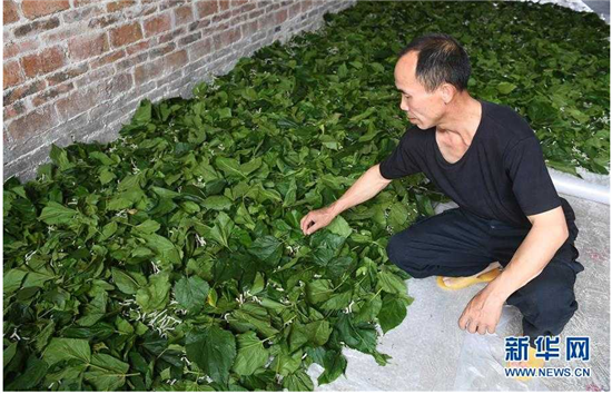 5月14日,在廣西環(huán)江毛南族自治縣大才鄉(xiāng)新坡村,一名村民在查看蠶的生長(zhǎng)情況