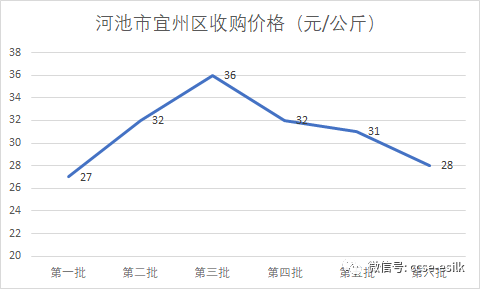 6月22日開始按照片區(qū)逐步進(jìn)入上市高峰,價格普遍在每公斤31元左右,不超過32元。