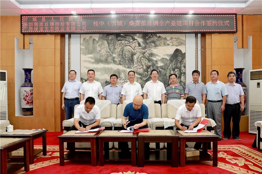 此次簽約的桂中(忻城)桑蠶繭絲綢全產業(yè)鏈項目,將以深圳同益新中控實業(yè)有限公司為龍頭,由忻城縣產投集團有限公司、深圳南派絲綢控股有限公司和廣西綠寶生態(tài)牧業(yè)有限公司等三家公司在項目建設地共同設立項目公司來具體運營,擬在忻城及周邊流轉宜草宜林坡地或荒地作為桑樹種植地50萬畝、紅渡工業(yè)園區(qū)建成并運營桑蠶產業(yè)園區(qū)1600畝。項目包括鮮繭烘干、繅絲、織綢、練白、印染(數(shù)碼印花)、服裝、家居服飾、床上用品、外貿等建設內容。項目總投資約50億元,年耗繭10萬噸,年產生絲1.5萬噸,真絲綢1.5億米,真絲綢制成品7500萬件套,建成運行可實現(xiàn)年銷售額100億元左右,利稅約5億元,提供15000人直接就業(yè)崗位。