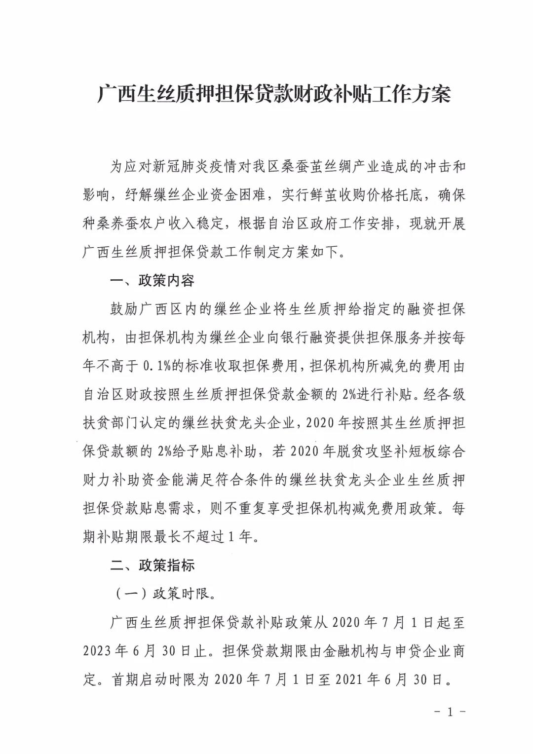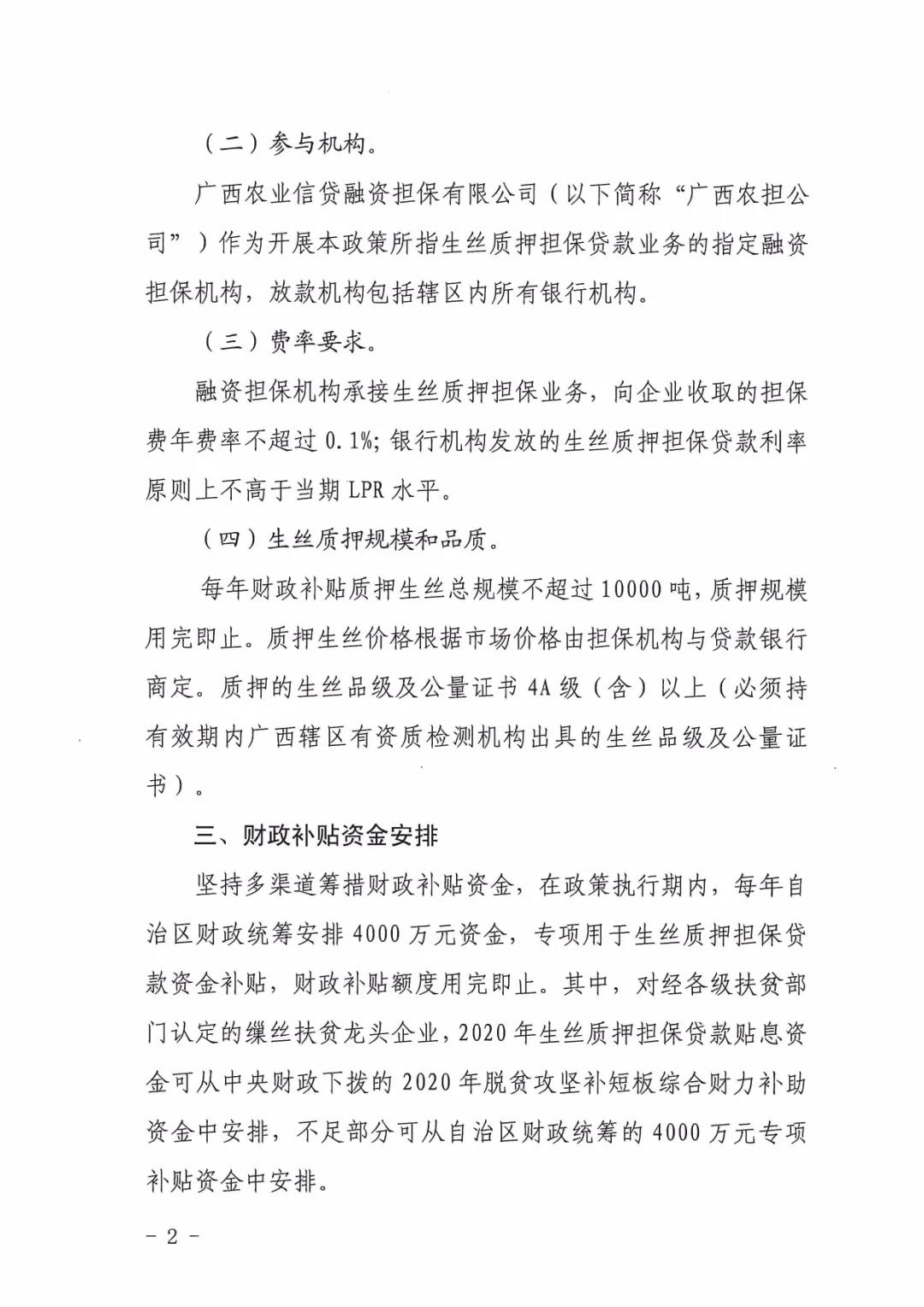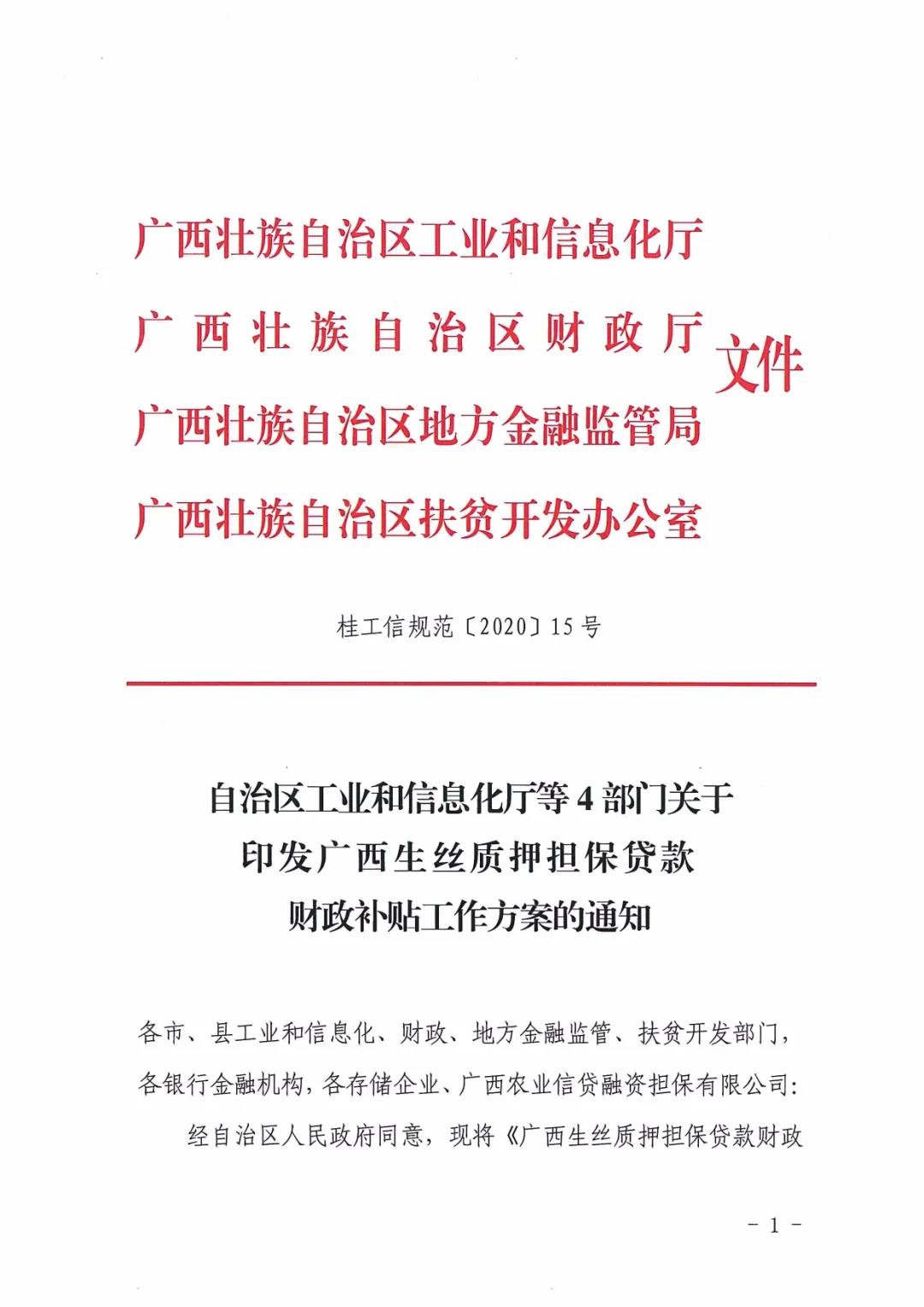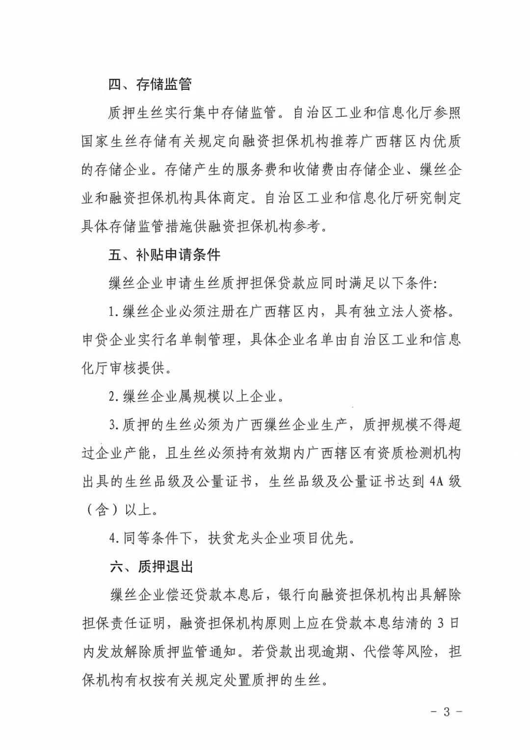 廣西區(qū)工信廳等四部門發(fā)布生絲質(zhì)押擔(dān)保貸款財政補貼工作方案