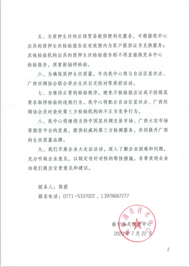南寧海關(guān)技術(shù)中心關(guān)于支持生絲企業(yè)復(fù)工復(fù)產(chǎn)及推進(jìn)落實(shí)《廣西生絲質(zhì)押擔(dān)保貸款財政補(bǔ)貼工作方案》的幫扶措施