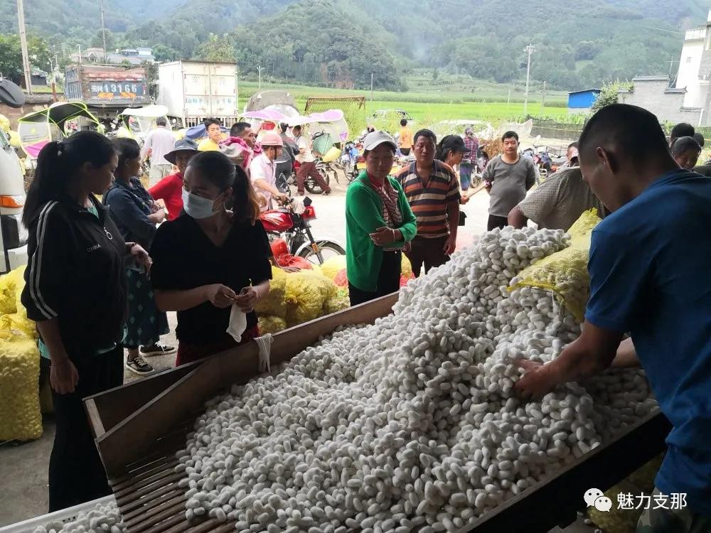 8月6日,支那鄉(xiāng)蠶桑集中收購點出現(xiàn)了一片繁忙的景象。支那鄉(xiāng)蠶繭正式開秤啦!一袋袋、一簍簍雪白的蠶繭,運送到收購點,變成了蠶農(nóng)的致富希望。