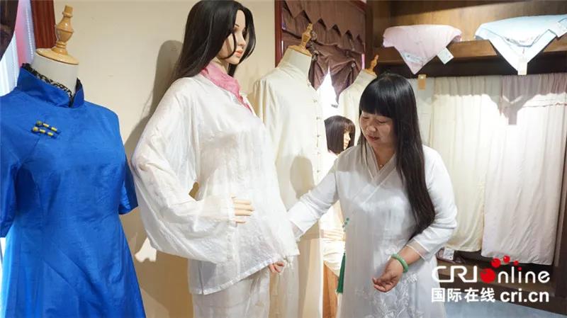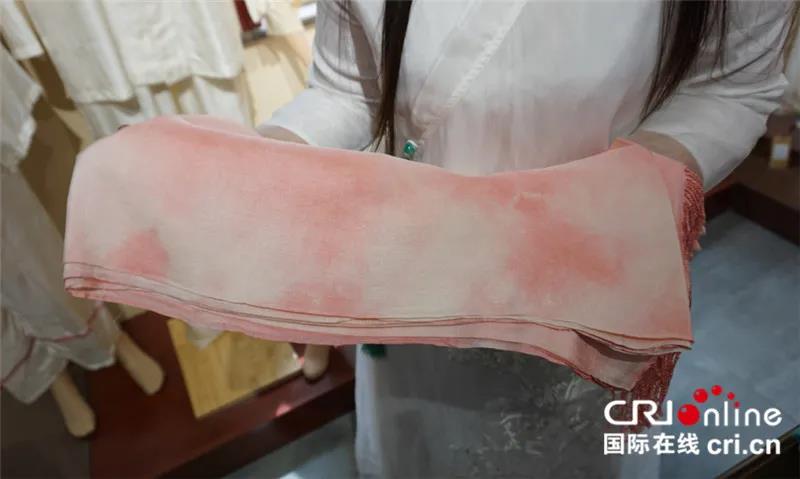 王麗娟拿著圍巾和蠶絲服裝介紹說,柞蠶絲綢富含十八種氨基酸,遠(yuǎn)遠(yuǎn)高于桑蠶的含量,并且一化柞蠶的絲綢從柞蠶的養(yǎng)殖到絲綢成品的顏色,整個(gè)制作過程全部采用傳統(tǒng)的制作方法,山柴升溫、泉水煮繭,手工繅絲、選絲、絡(luò)絲、整經(jīng)、打緯、織綢等多道工序,確保了柞蠶絲天然的光亮和色澤。這種手工紡織的柞蠶絲綢,手感爽滑,柔而有骨,綢面密實(shí)、吸濕透氣、抑菌防腐,做成的衣服,穿著輕盈、涼爽。