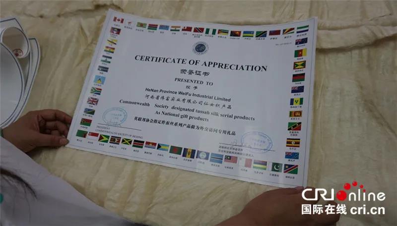 2019年6月15日,魯山柞蠶絲系列產(chǎn)品作為一種文化交流載體,在尼日利亞駐華使館舉行的英聯(lián)邦北京協(xié)會26周年慶暨英聯(lián)邦“扶貧”慈善博覽會上亮相,獲得多位駐華外交官青睞。參會的王麗娟耐心講解柞蠶絲綢歷史背景、發(fā)展歷程及生產(chǎn)染織的流程,魯山柞蠶絲綢天然珠寶般的光澤、爽滑手感和優(yōu)良特性,令現(xiàn)場觀眾對這一中華民族傳統(tǒng)文化瑰寶贊不絕口。