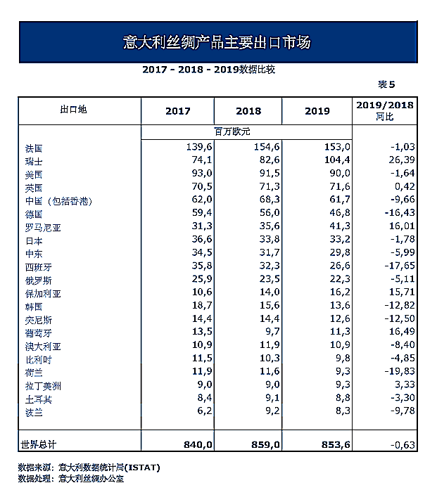 2019年意大利絲綢產品貿易數(shù)據(jù)