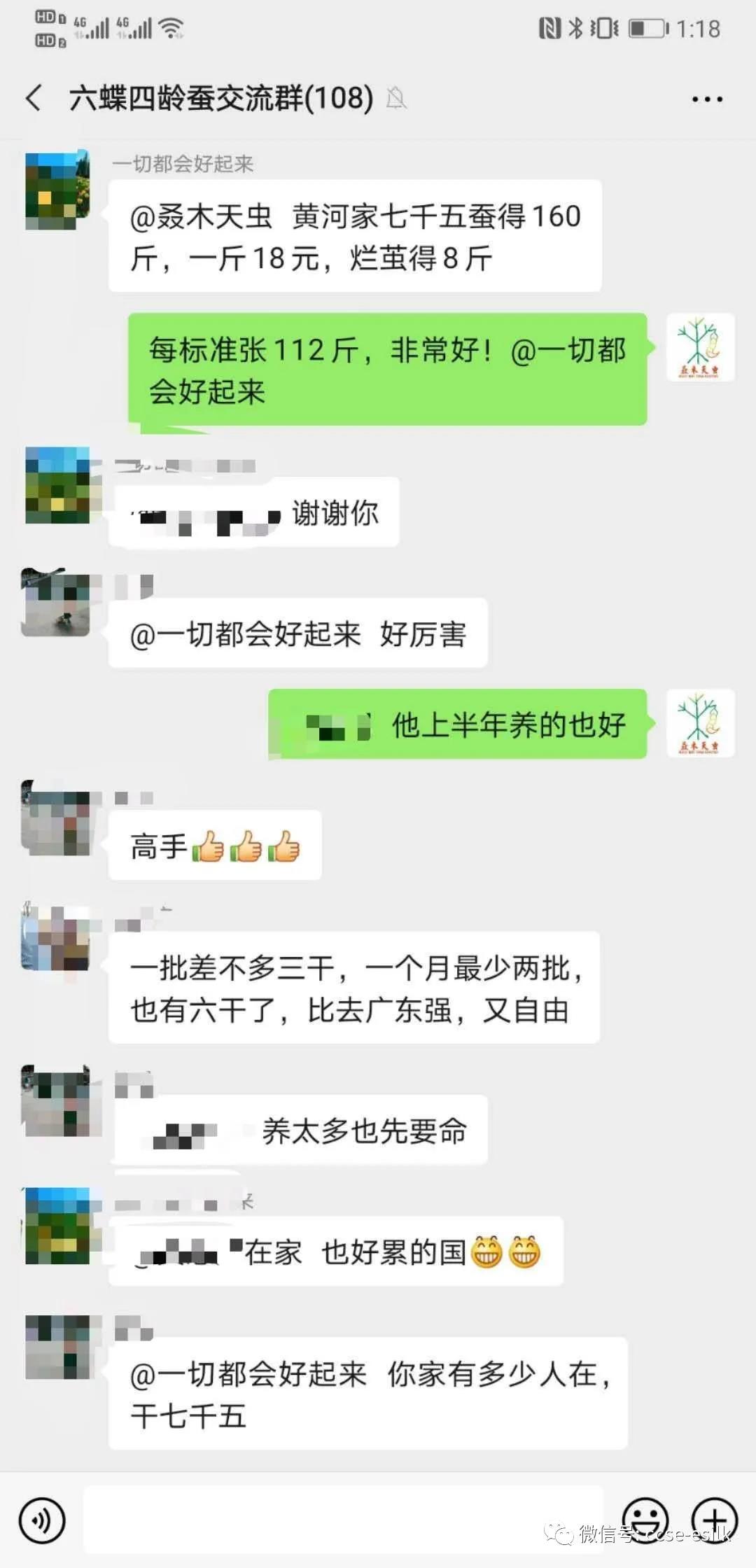 看到陳總在手機(jī)一個(gè)養(yǎng)蠶群里回著信息,我們也請陳總截個(gè)屏給我們看看。