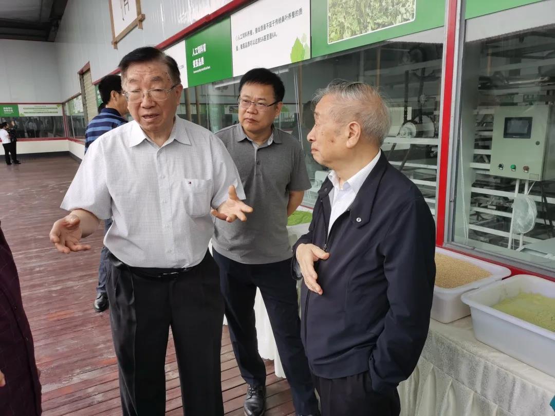 院士一行隨后參觀調(diào)研尚好茶業(yè)公司基地。公司堅(jiān)持 “立桑為業(yè)、多元發(fā)展、生態(tài)富民、開(kāi)拓創(chuàng)新”發(fā)展方針,加大桑樹(shù)綜合利用,提高桑產(chǎn)品附加值,開(kāi)發(fā)出桑茶、桑葉粉、桑枝菌等多元化品種,創(chuàng)新推進(jìn)人工飼料養(yǎng)蠶技術(shù)。院士一行邊看邊詢問(wèn),深入了解公司產(chǎn)品的生產(chǎn)和銷售情況,對(duì)公司通過(guò)提供原料、技術(shù)指導(dǎo)、群眾參與,帶動(dòng)周邊農(nóng)民在家實(shí)現(xiàn)致富的做法給予充分肯定。