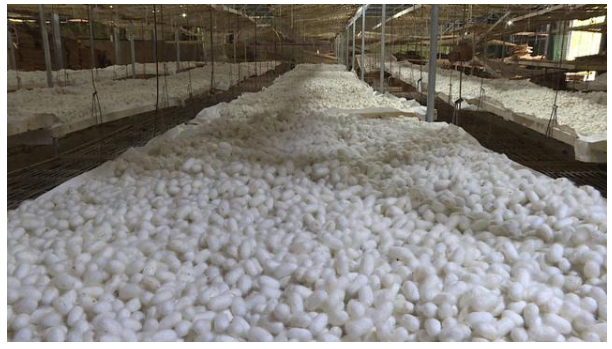 縷縷桑風(fēng),聲聲蠶韻。養(yǎng)蠶人家通過(guò)發(fā)展蠶桑產(chǎn)業(yè),精彩地演繹了“化蛹成蝶”的增收故事,織就了農(nóng)人致富的“小康夢(mèng)”,桑風(fēng)蠶韻,已成為四川省鹽亭縣黃甸鎮(zhèn)利河村的一道亮麗風(fēng)景線。這幾天,在黃甸鎮(zhèn)利和村盛淼公司蠶棚內(nèi),數(shù)千張方格簇整齊排列,白花花的蠶繭如雪似霜,煞是喜人,100多個(gè)村民忙得不亦樂(lè)乎,忙著摘蠶繭。