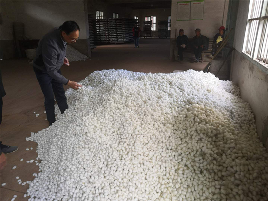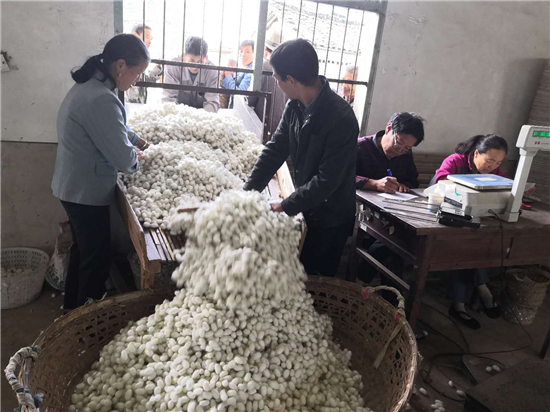 今年淳安縣晚中秋發(fā)放蠶繭11492張,蠶繭收購繭量378.5噸,收購繭款1650萬元,收購價格達(dá)到43.8元/公斤,相較于廣西地區(qū)高出16元/公斤左右。在今年疫情嚴(yán)重的情況下,能夠達(dá)到這樣的繭價,已經(jīng)是很不容易了。從今年以來的整個蠶繭收購情況來看,由于受疫情影響,繭絲市場行情持續(xù)疲軟,繭價總體同比下降,為了保護(hù)最廣大蠶農(nóng)的根本利益,淳安縣繭絲綢有限公司及時開啟保護(hù)價收購,同時深入開展進(jìn)村入戶活動,加大宣傳力度,加強(qiáng)簇中管理工作,努力提高蠶繭繭質(zhì),收到了很好的成效。