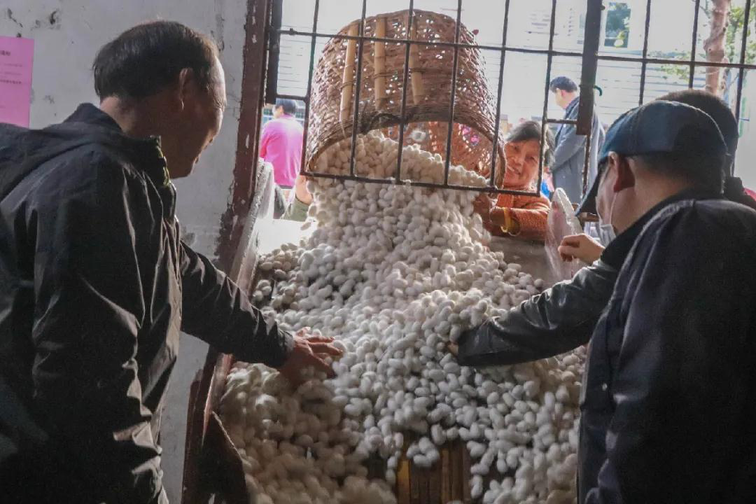 比賽蠶農(nóng)將參賽的繭子送到繭站
