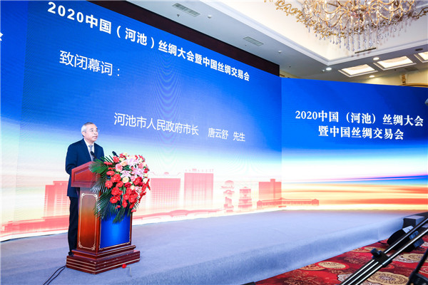 尊敬的各位領(lǐng)導(dǎo)、各位嘉賓,女士們、先生們、朋友們,2020年中國(guó)(河池)絲綢大會(huì)暨中國(guó)絲綢交易會(huì)經(jīng)過(guò)各位領(lǐng)導(dǎo)、各位嘉賓、各位專(zhuān)家學(xué)者的共同努力,圓滿完成了各項(xiàng)既定議題,取得了豐碩成果,即將勝利閉幕。