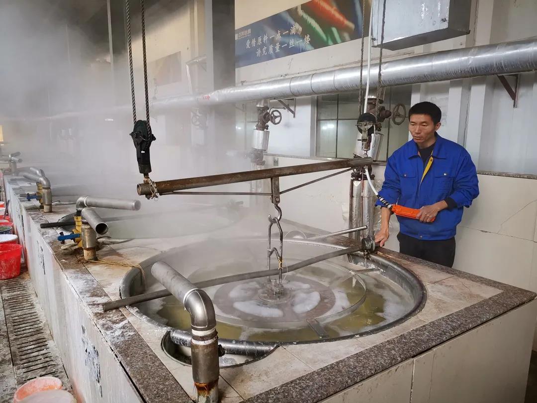 12月15日,雪后初霽,記者走進(jìn)達(dá)利絲綢(浙江)有限公司精煉車(chē)間,車(chē)間里一片霧氣騰騰,工人們正在有條不紊進(jìn)行胚布煉白、脫膠、定型等各道工序的處理。達(dá)利絲綢副總經(jīng)理張金珍告訴記者,盡管用傳統(tǒng)方式通過(guò)堿劑、精煉劑對(duì)絲綢進(jìn)行精煉,能促進(jìn)蠶絲表層絲膠蛋白雜質(zhì)水解而除去,使絲綢顏色潔白、質(zhì)感柔軟、色澤光亮,但同時(shí)精煉去除的絲膠蛋白作為廢水的主要含量,大量的絲膠蛋白白浪費(fèi),而且精煉過(guò)程中還會(huì)產(chǎn)生氣體,因此整個(gè)絲綢印染加工過(guò)程中,真絲精煉無(wú)疑是污染最為嚴(yán)重的環(huán)節(jié),企業(yè)每年因絲膠廢水處理問(wèn)題投入巨大的環(huán)保治理資金。
