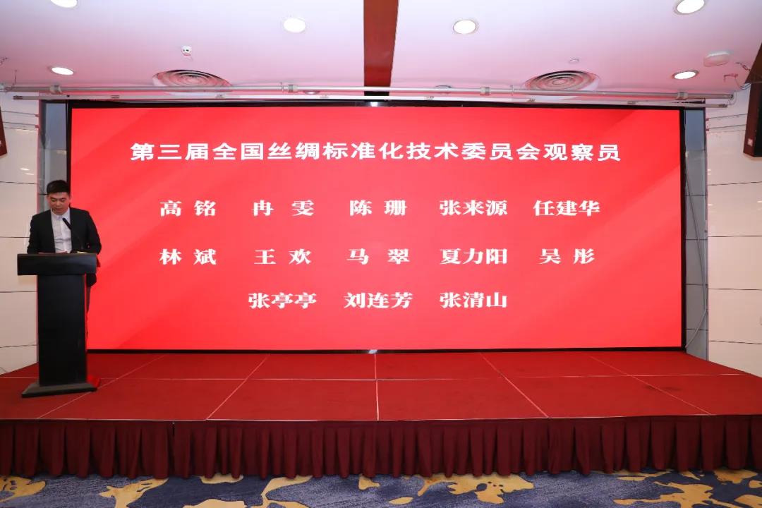 李鵬秘書長在會上宣讀聘任高銘等13人為第三屆全國絲綢標委會觀察員