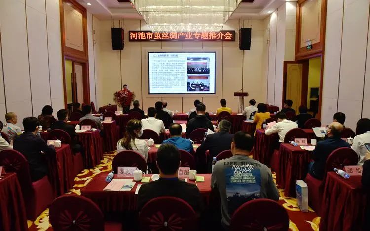 覃永龍和環(huán)江毛南族自治縣副縣長李萬峰分別作繭絲綢產(chǎn)業(yè)專題推介。