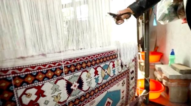 在織女李霞家,一塊波斯地毯剛剛完工,胡延召用工具收割地毯,這款真絲地毯要出口國外。每塊真絲地毯都由工廠提供原料,織女只收取加工費(fèi),李霞這塊地毯的加工費(fèi)是1130元。
