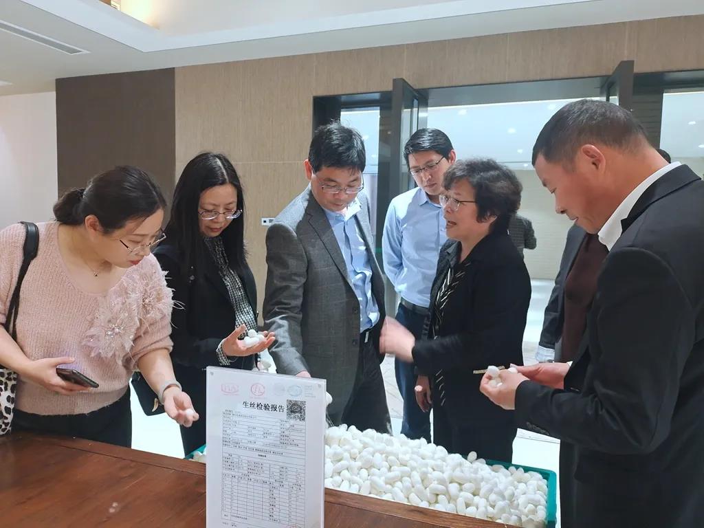 為加強(qiáng)絲綢行業(yè)各企業(yè)的信息技術(shù)交流,提升我省繭絲綢產(chǎn)業(yè)鏈、供應(yīng)鏈整體水平,省絲綢協(xié)會(huì)組織絲綢行業(yè)企業(yè)家來我司進(jìn)行參觀交流,希望借此機(jī)會(huì)增進(jìn)繭絲綢上下游合作關(guān)系。公司董事長(zhǎng)金耀向來賓介紹了公司的發(fā)展歷程及目前生產(chǎn)情況,并引領(lǐng)來賓參觀了工廠化養(yǎng)蠶車間。
