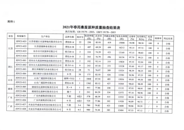 附件:1. 2021年春用桑蠶原種質(zhì)量抽查結(jié)果表