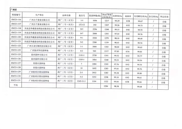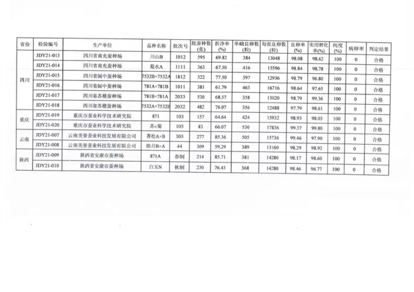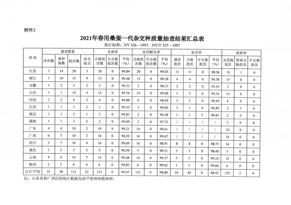 2. 2021年春用桑蠶一代雜交種質(zhì)量抽查結(jié)果匯總表