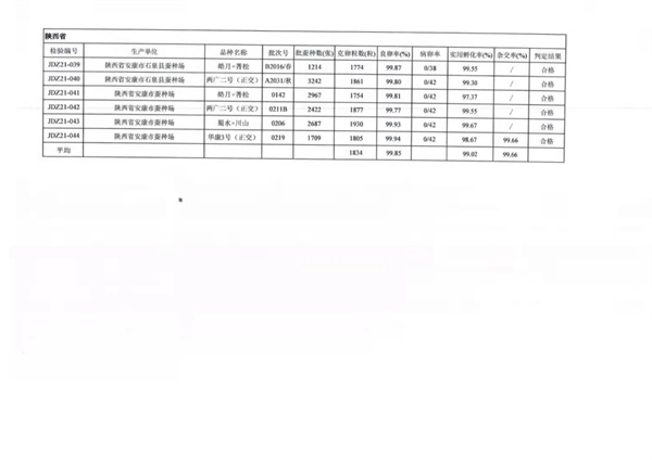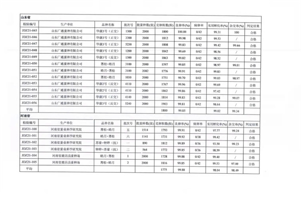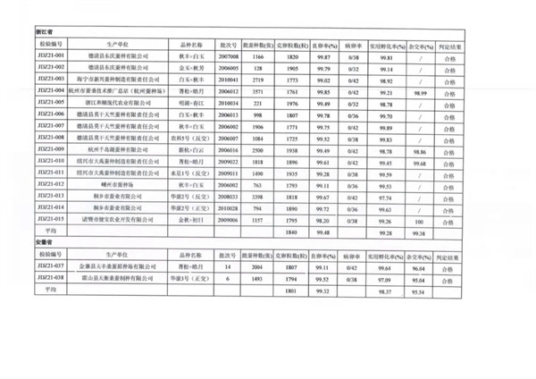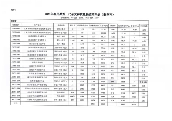 3. 2021年春用桑蠶一代雜交種質(zhì)量抽查結(jié)果表(散卵種)