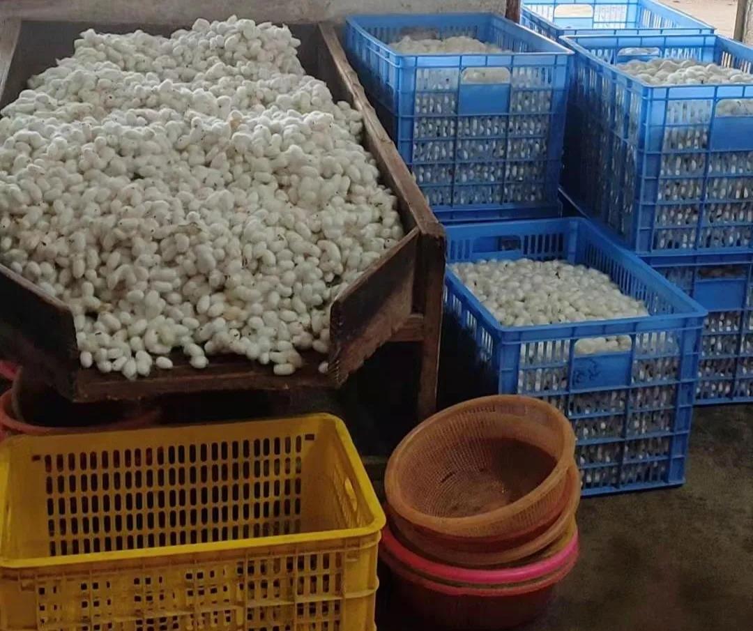 根據(jù)氣候情況,家寶公司、共育場(chǎng)、蠶業(yè)生產(chǎn)部等相關(guān)部門密切配合、積極行動(dòng),強(qiáng)化管理、派駐技術(shù)人員及繭站人員下鄉(xiāng)進(jìn)行指導(dǎo)培訓(xùn),提升蠶農(nóng)種桑養(yǎng)蠶的技術(shù)水平。把指導(dǎo)農(nóng)民養(yǎng)好蠶,爭(zhēng)取得到更好更高質(zhì)量的蠶繭,同時(shí)賣繭的時(shí)候一定要賣化蛹繭,讓我們農(nóng)戶蠶繭好,賣的價(jià)格高,增收增效明顯作為工作的重點(diǎn)。