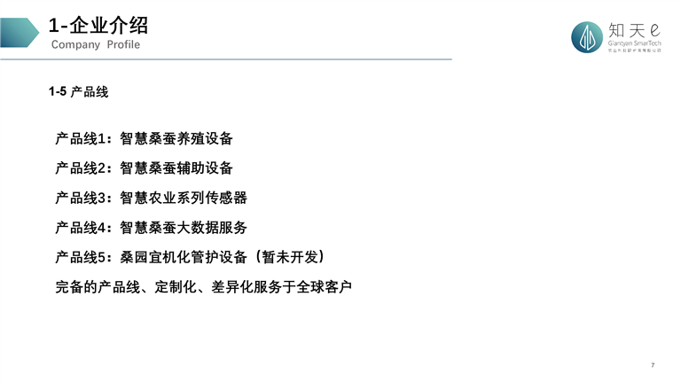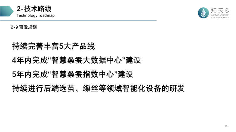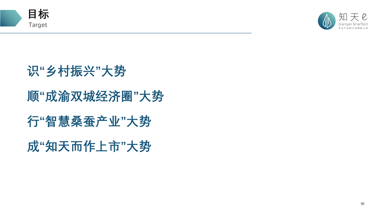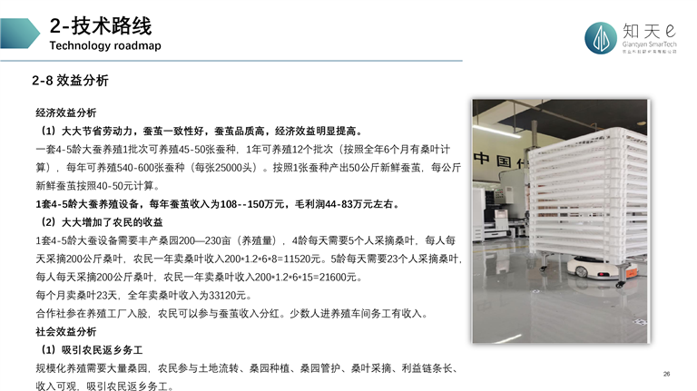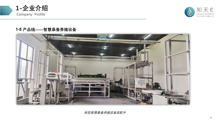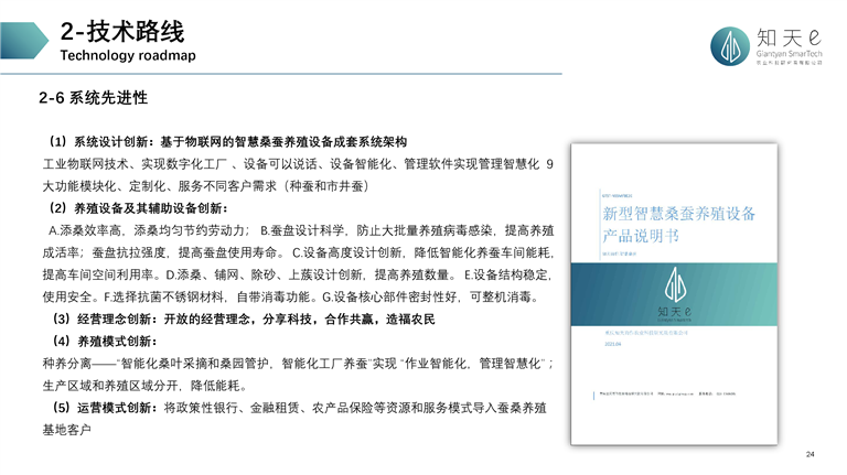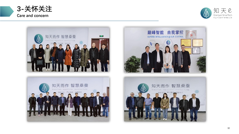 璧山區(qū)人民政府投資打造300畝智慧桑蠶生態(tài)園和1000平米智慧桑蠶展示中心。公司核心團(tuán)隊(duì)歷經(jīng)3年研發(fā),取得70多項(xiàng)專利技術(shù)。公司貫徹2020年9月25日工業(yè)和信息化部、農(nóng)業(yè)農(nóng)村部、商務(wù)部、文化和旅游部、國(guó)家市場(chǎng)監(jiān)督管理總局。國(guó)家知識(shí)產(chǎn)權(quán)局六部委關(guān)于印發(fā)《蠶桑絲綢產(chǎn)業(yè)高質(zhì)量發(fā)展行動(dòng)計(jì)劃(2021-2025)》的通知,依托人工智能、大數(shù)據(jù)、智能織制造等技術(shù),提升科技創(chuàng)新水平。推進(jìn)蠶桑生產(chǎn)產(chǎn)業(yè)化集約化,以“開(kāi)放式的產(chǎn)業(yè)生態(tài)經(jīng)營(yíng)理念”,將“產(chǎn)、學(xué)、研"相結(jié)合打造產(chǎn)業(yè)集群井構(gòu)建產(chǎn)業(yè)生態(tài),致力于桑蠶全產(chǎn)業(yè)鏈桑樹(shù)種植、桑園管理、桑葉采摘、蠶種制育。智能養(yǎng)蠶全產(chǎn)業(yè)鏈設(shè)備研發(fā)制造和大數(shù)據(jù)平臺(tái)研發(fā),構(gòu)建“一庫(kù),一園,六中心”,通過(guò)高科技技術(shù)實(shí)現(xiàn)“如天而作”的精準(zhǔn)農(nóng)業(yè)目標(biāo),徹底改變蠶條產(chǎn)業(yè)5000年“靠天吃飯”的手工養(yǎng)殖模式,為蠶桑產(chǎn)業(yè)賦能,開(kāi)發(fā)高附加值的產(chǎn)品,通過(guò)一帶一路新絲綢之路經(jīng)濟(jì)帶,讓蠶桑產(chǎn)業(yè)更好地服務(wù)于全球,實(shí)現(xiàn)“智慧桑蠶代表中國(guó),中國(guó)代表世界"。