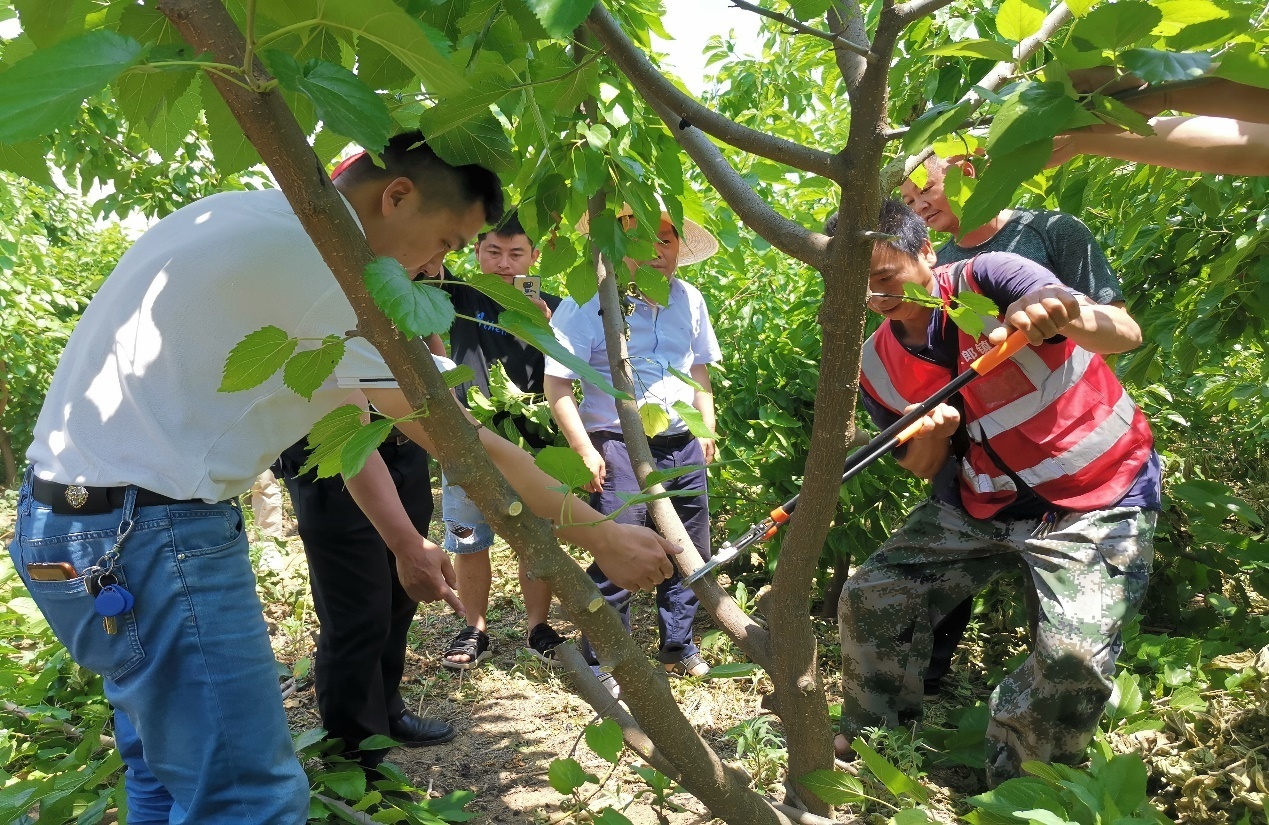 隨后全體參會人員又到桑椹產(chǎn)業(yè)園區(qū)現(xiàn)場聽取果桑夏伐技術要求及示范操作,并在專家的指導下實地進行了現(xiàn)場操作。