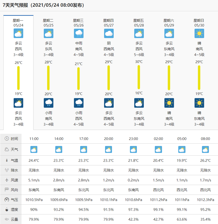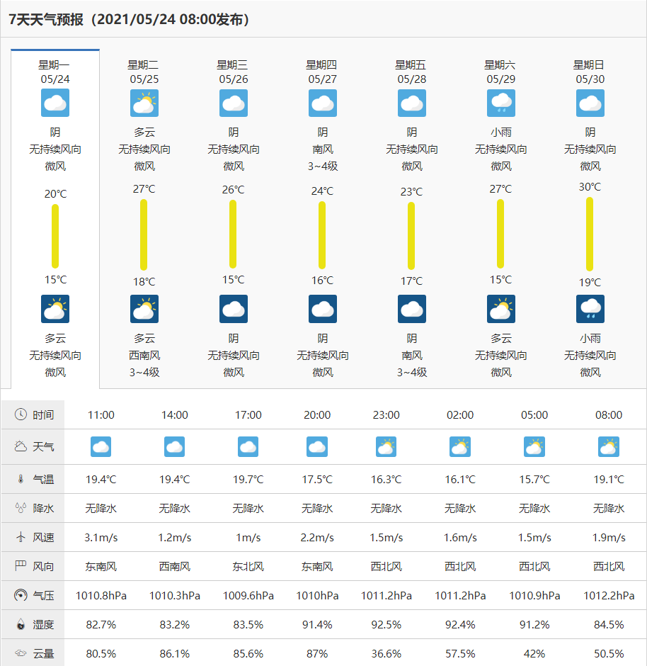 江蘇中北蠶桑地區(qū)近一周天氣預(yù)報(bào)