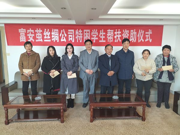 江蘇富安繭絲綢股份有限公司在自身發(fā)展的同時不忘回饋社會,多年來一直勇于承擔(dān)社會責(zé)任,熱心公益事業(yè)。六年來,繭絲綢公司連續(xù)開展愛心助學(xué)公益項目,用來資助困難學(xué)生順利完成學(xué)業(yè)。