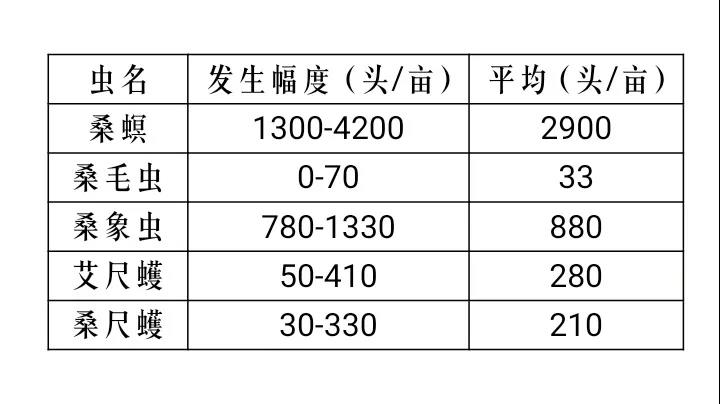 桑虱發(fā)生面積全縣達到3500畝左右,畝發(fā)生量10-30萬只。桑薊馬百葉蟲量4000-8000頭。