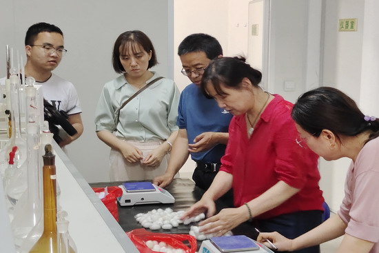 在次營(yíng)鎮(zhèn)晉城市晉岳文化旅游開(kāi)發(fā)有限公司參觀了桑黃產(chǎn)業(yè)園、桑芽菜加工流水線、蛋白桑葉茶、蠶桑宴飲食系列產(chǎn)品;在西河鄉(xiāng)桑多樂(lè)農(nóng)產(chǎn)品有限公司,參觀了霜桑葉茶的生產(chǎn)工藝;在北留鎮(zhèn)石苑村綠源林果種植農(nóng)民合作社,參觀了桑芽茶、桑葉茶、桑椹干加工車間和果?;兀辉谒骂^鄉(xiāng)朱村參觀葚天酒業(yè)有限公司,參觀了桑葚酒的生產(chǎn)工藝和加工流程。王東書(shū)記指出:現(xiàn)在全國(guó)各地抓住桑樹(shù)藥食同源的優(yōu)勢(shì),大力發(fā)展桑產(chǎn)業(yè),由以前的栽桑養(yǎng)蠶發(fā)展到現(xiàn)在的栽桑養(yǎng)人、養(yǎng)畜,但全國(guó)桑葉茶、桑葉菜、桑椹干、桑果酒等生產(chǎn)廠家很多,產(chǎn)品質(zhì)量好壞不一,價(jià)格也千差萬(wàn)別,我們一定要嚴(yán)格按照加工技術(shù)規(guī)程,嚴(yán)選原料,嚴(yán)把質(zhì)量,狠抓生產(chǎn)環(huán)節(jié),以高質(zhì)量打響山西蠶桑系列產(chǎn)品的品牌。王東書(shū)記同時(shí)對(duì)后期產(chǎn)品銷售環(huán)節(jié)提出了指導(dǎo)性的意見(jiàn)。