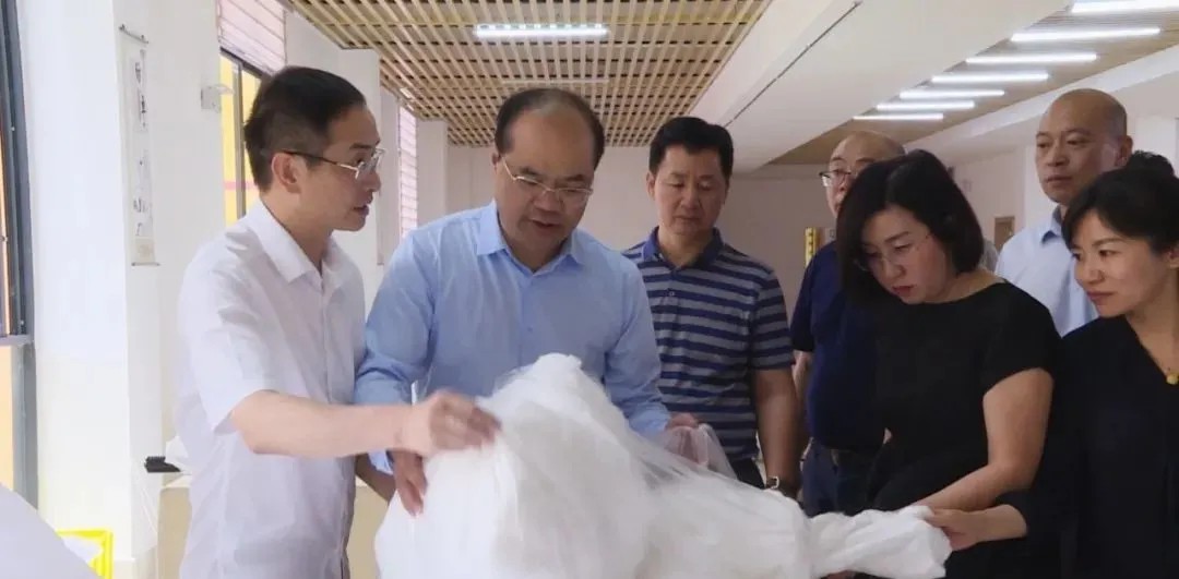 近日,貴州省黔西南州考察團(tuán)到廣西那坡縣同益新絲綢科技實(shí)業(yè)有限公司開展考察工作,那坡縣委常委、副縣長張連利陪同。期間,考察團(tuán)一行先后實(shí)地參觀了展示中心、生產(chǎn)車間等,詳細(xì)了解企業(yè)生產(chǎn)設(shè)備狀態(tài)、當(dāng)前主要生產(chǎn)產(chǎn)品、市場銷售等情況,并就生產(chǎn)技術(shù)、產(chǎn)品銷售等方面交流經(jīng)驗(yàn)。