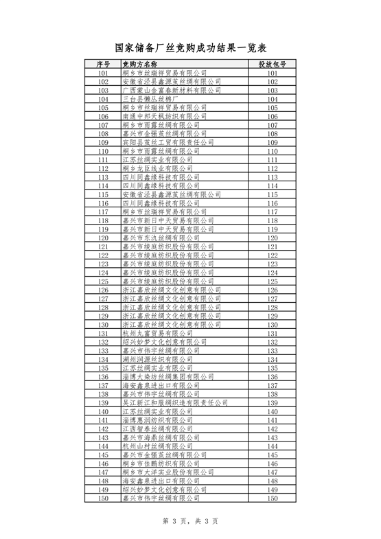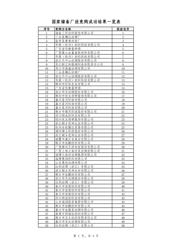 國家儲備廠絲競購成功企業(yè)名單