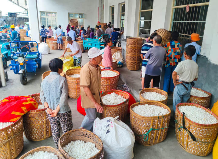 7月18日,杭州市淳安縣夏季蠶繭全面上市再獲豐收。當(dāng)日清晨,千島湖農(nóng)發(fā)集團(tuán)下屬繭絲綢有限公司各繭站開(kāi)秤收購(gòu),這是今年飼養(yǎng)的第三批蠶種。