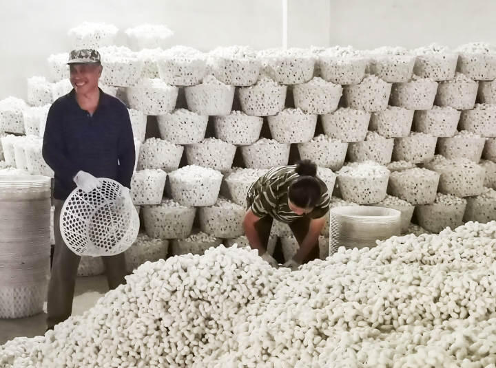 今年夏季引進(jìn)的新品種上繭率在80%以上,色澤好、勻凈度好、繭質(zhì)優(yōu)良。截至發(fā)稿前,收購(gòu)蠶繭率已將近90%,均價(jià)比去年同期高出14元/公斤,價(jià)格上漲28%以上。