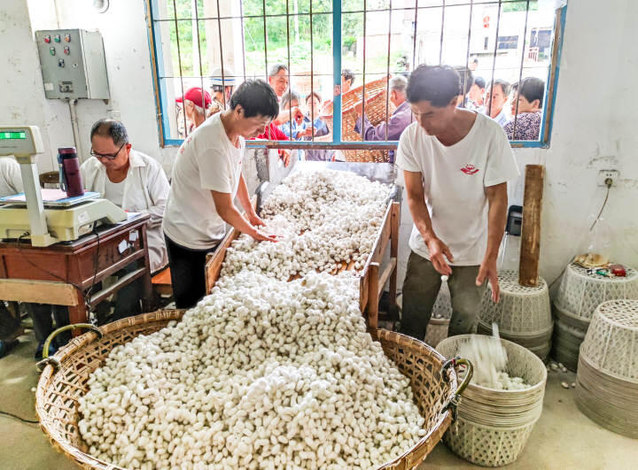 云南陸良地區(qū)夏繭近日開秤收購,最高收購價每公斤60元。陸良惠農蠶桑專業(yè)合作社秉持“優(yōu)質優(yōu)價、劣質低價”收購方針,收購價格與市場全面接軌,應收盡收。