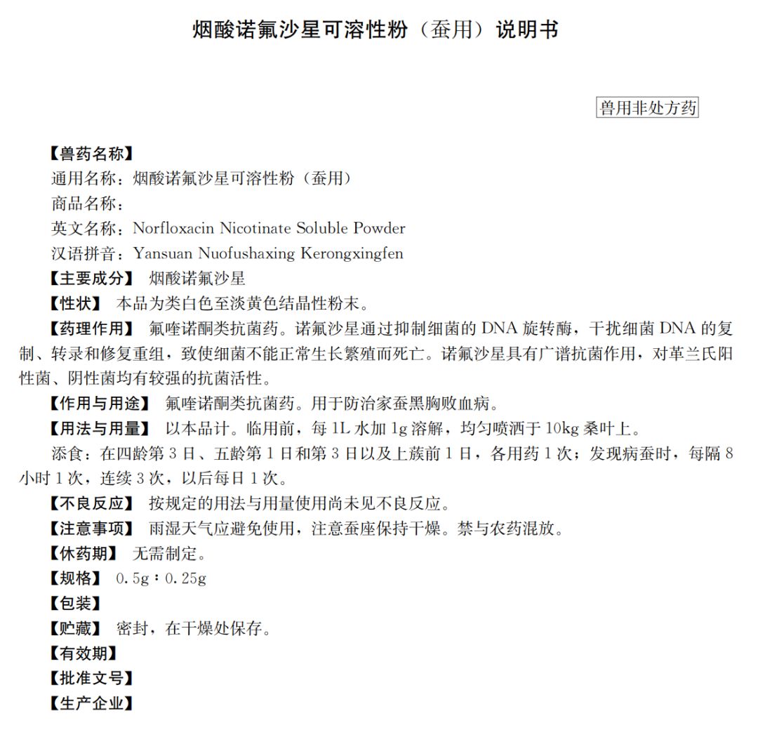 | 煙酸諾氟沙星可溶性粉(蠶用) |