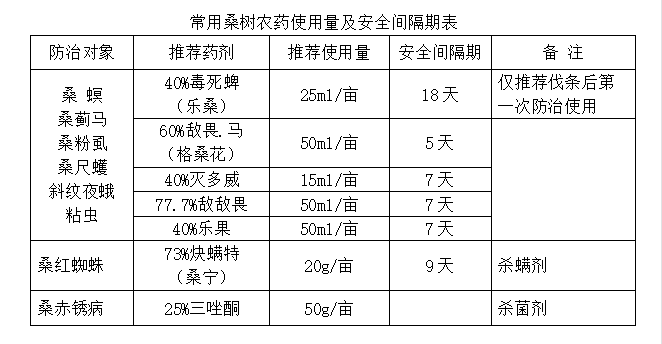 2、建議用登記在桑樹上使用的桑樹專用藥防治桑樹病蟲。