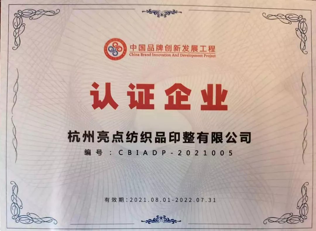 杭州亮點(diǎn)紡織品印整公司榮獲國(guó)字品牌認(rèn)證