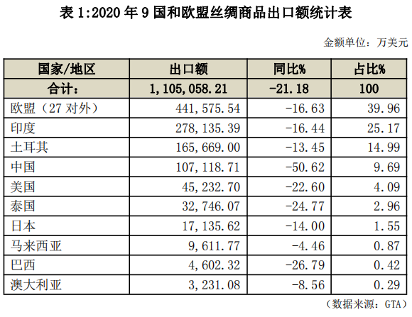 9國(guó)和歐盟絲綢商品具體進(jìn)出口情況如下: