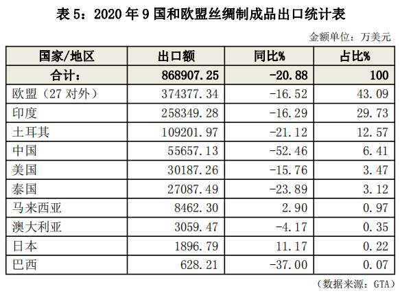 (六)9國(guó)和歐盟絲綢制成品出口情況