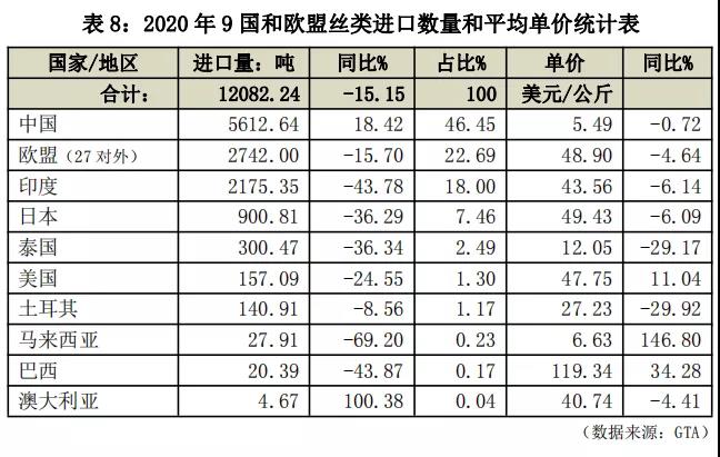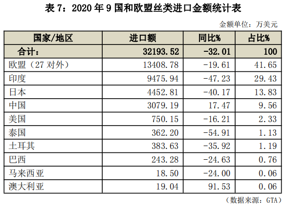 (四)、9國(guó)和歐盟絲類進(jìn)口情況